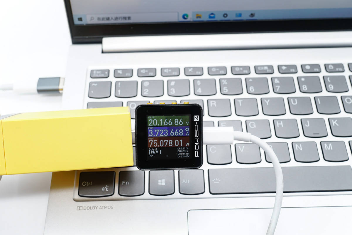 I samme scenarie oplades Lenovo Xiaoxin Pro 14 2021 med en effekt på 20,16V 3,72A 75,07W.